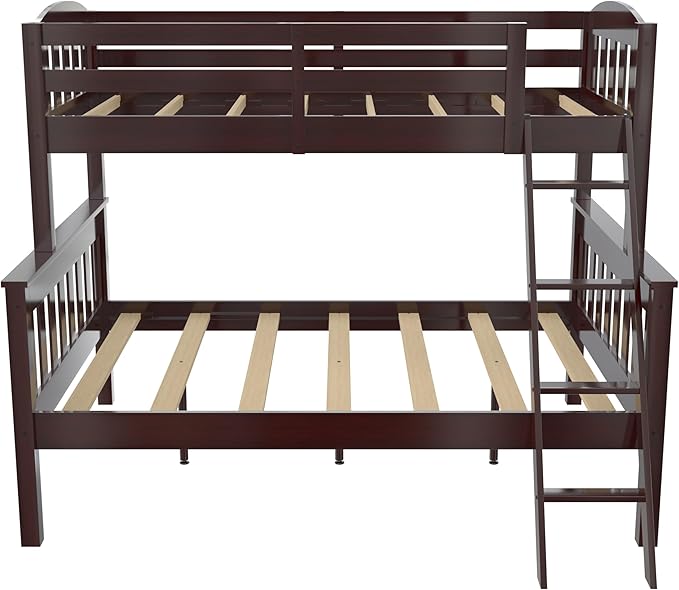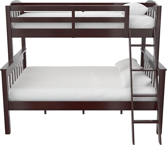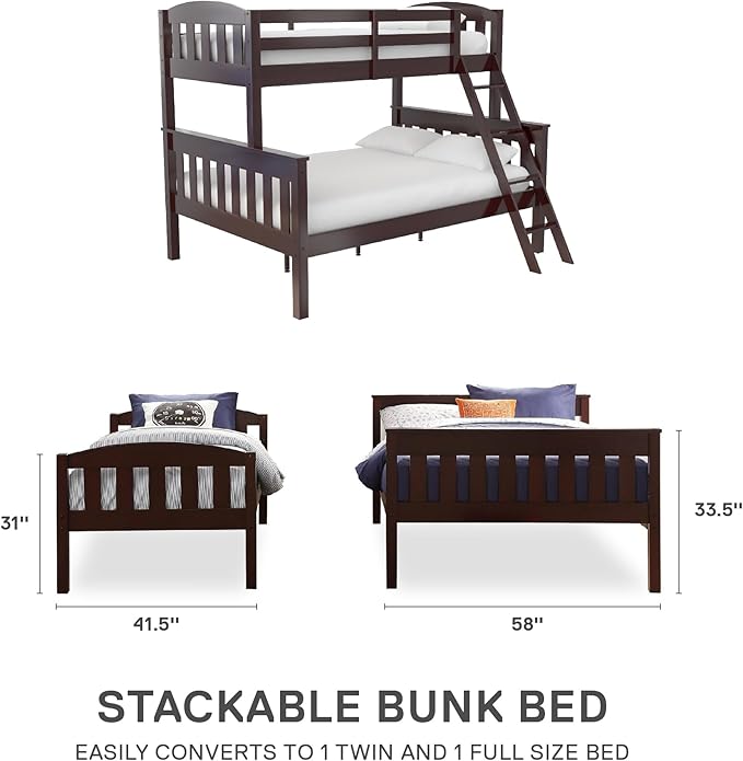 DHP Airlie Convertible Wood Bunk Bed, Stackable and Detachable Bed Frames for Kids and Teens, with Angled Ladder, High Guardrail, Wood Slats, No Boxspring Required, Twin-Over-Full, Espresso