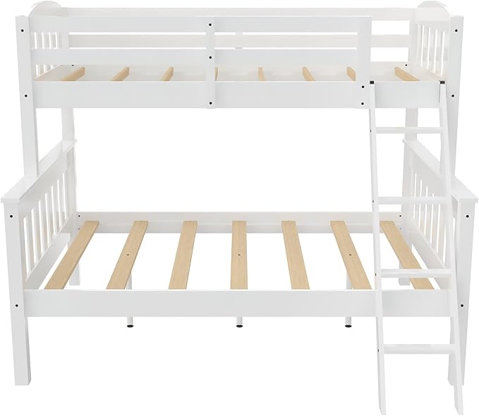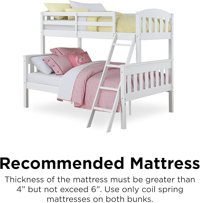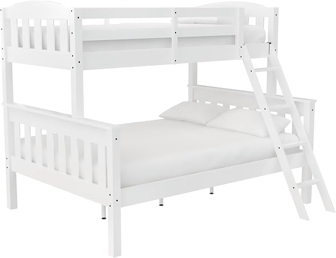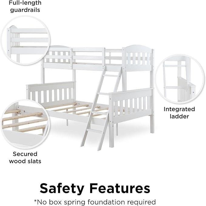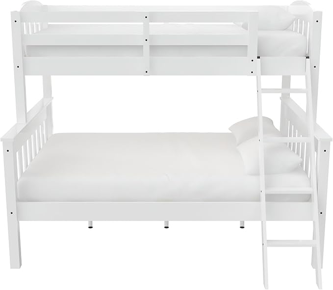 DHP Airlie Convertible Wood Bunk Bed, Stackable and Detachable Bed Frames for Kids and Teens, with Angled Ladder, High Guardrail, Wood Slats, No Boxspring Required, Twin-Over-Full, White