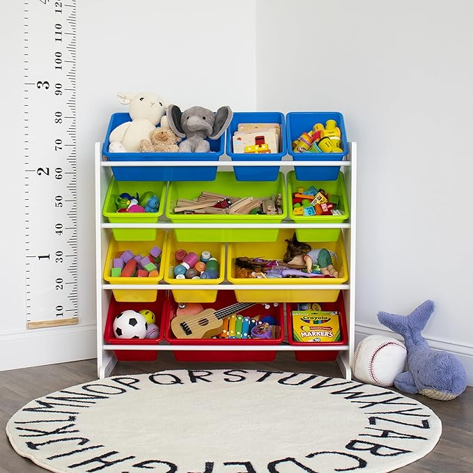 Humble Crew, White/Primary Kids' Toy Storage Organizer with 12 Plastic Bins