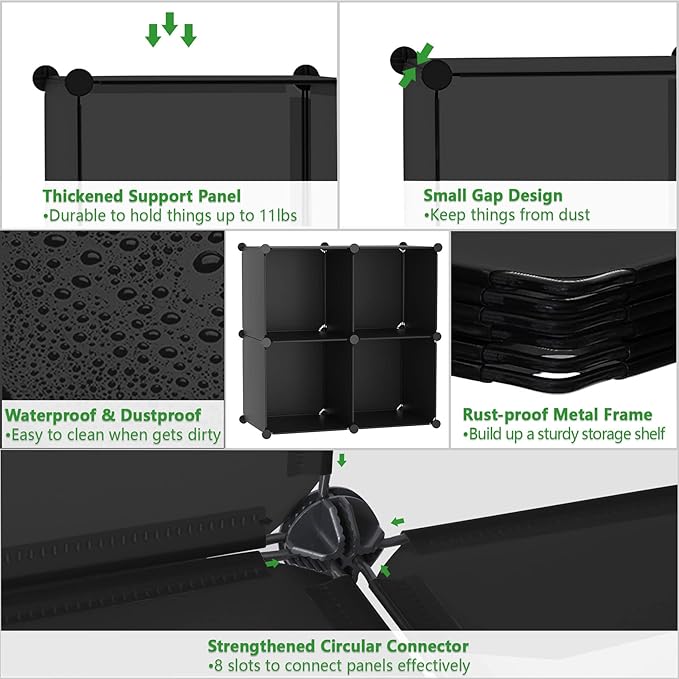 C&AHOME Cube Storage Organizer, 4-Cube Shelves Units, Closet Cabinet, DIY Plastic Modular Book Shelf, Ideal for Bedroom, Living Room, Office, 24.8" L x 12.4" W x 24.8" H Black SHS04A