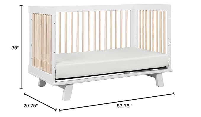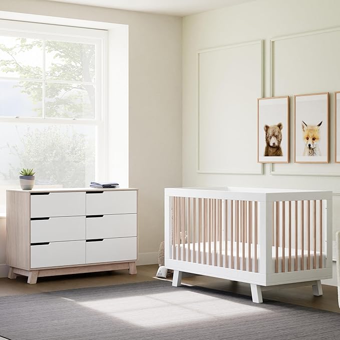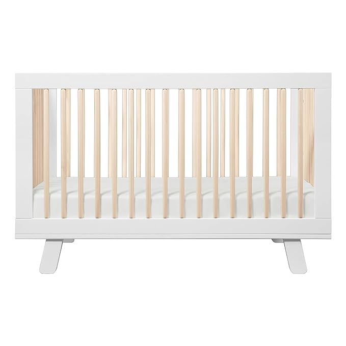 Babyletto Hudson 3-in-1 Convertible Crib with Toddler Bed Conversion Kit in White and Washed Natural, Greenguard Gold Certified