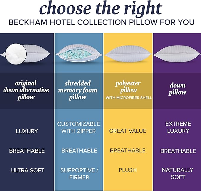 Beckham Hotel Collection Bed Pillows Standard / Queen Size Set of 2 - Down Alternative Bedding Gel Cooling Pillow for Back, Stomach or Side Sleepers