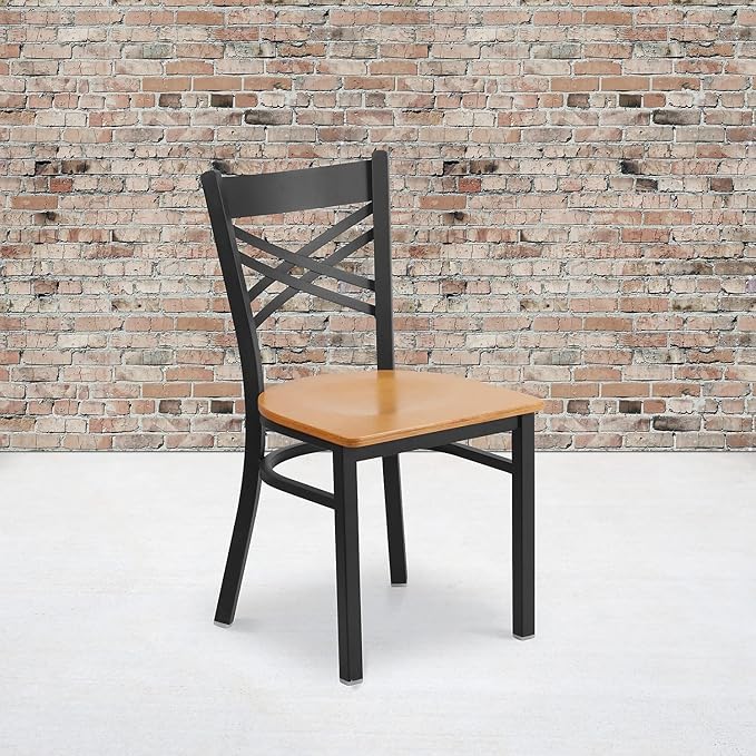 Flash Furniture 2 Pack HERCULES Series Black ''X'' Back Metal Restaurant Chair - Natural Wood Seat