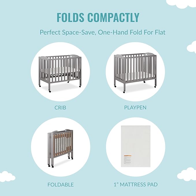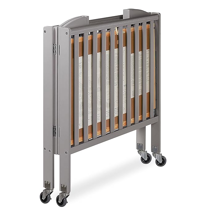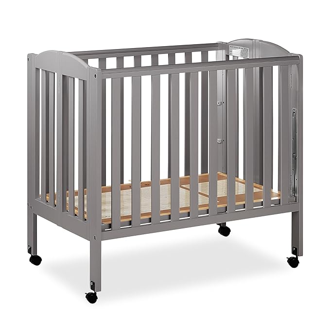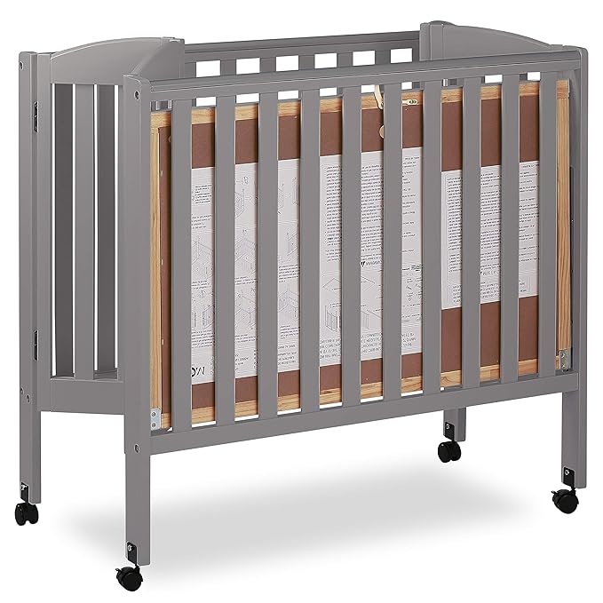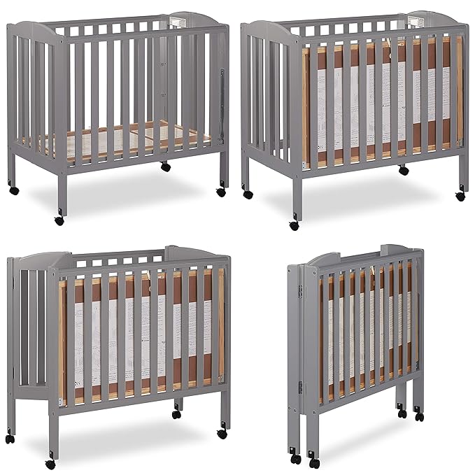 3 in 1 Portable Folding Stationary Side Crib in Steel Grey, Greenguard Gold Certified, Safety Wheels with Locking Casters, Convertible, 3 Mattress Heights