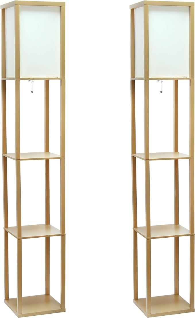 Simple Designs LF1014-TAN Etagere Organizer Storage Shelf Linen Shade Floor Lamp, Tan