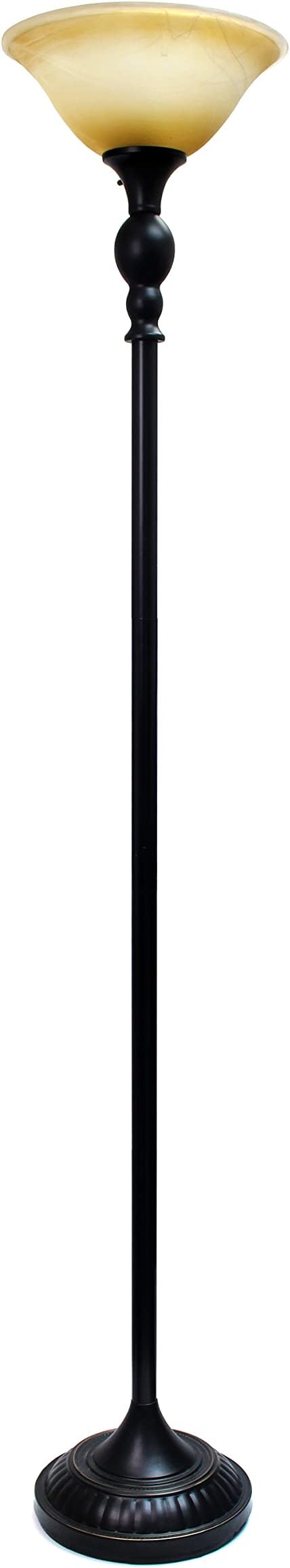 Elegant Designs LF2001-RBZ 1 Light Restoration Bronze Torchiere Floor Lamp with Marbelized Amber Glass Shade