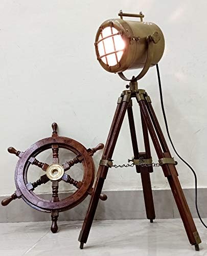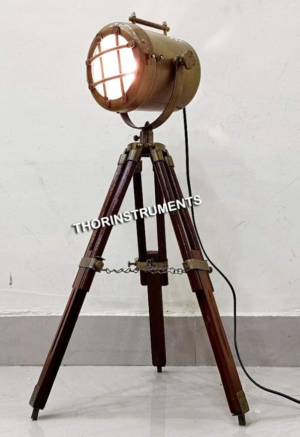 THOR INSTRUMENTS Antique Spotlight Nautical Home Decor Brass Finish Tripod Desktop Lamp Rustic Vintage Home Decor Gifts