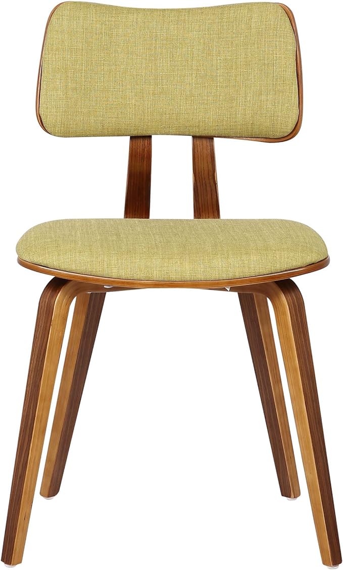 Armen Living Jaguar Mid Century Modern Upholstered Fabric and Walnut Wood Dining Accent Chair for Kitchen Table Desk Vanity, 20D x 18W x 29H in, Green