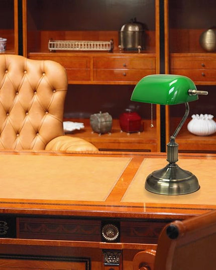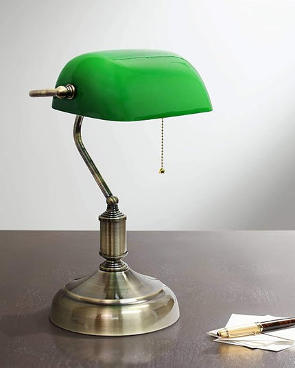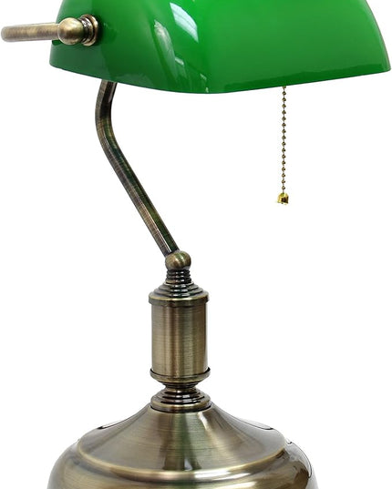 Simple Designs LT3216-GRN Executive Banker's Desk Lamp with Glass Shade, Green
