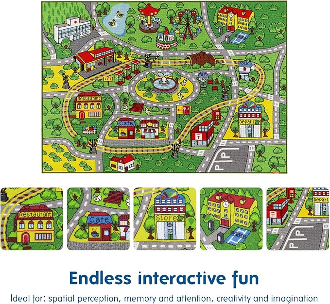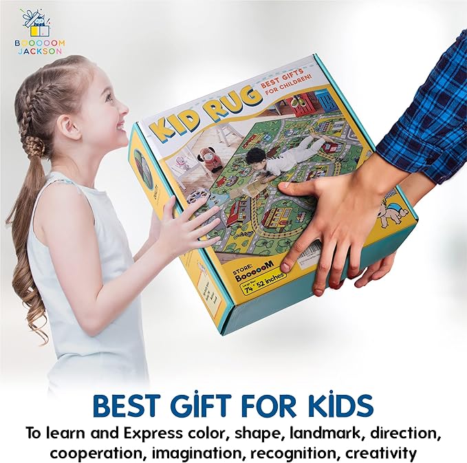 Jackson Car Mat for Kids Toy Cars,52"x 74" Train Rug Play Mat with Non-slip Backing, Kids Car Rug Play Mat for Playroom Large Car Rug Train Rug Play Mat for Children
