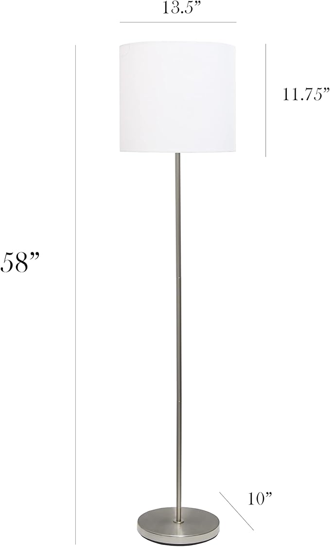 Simple Designs LF2004-WHT Brushed Nickel Stick Drum Shade Floor Lamp, White