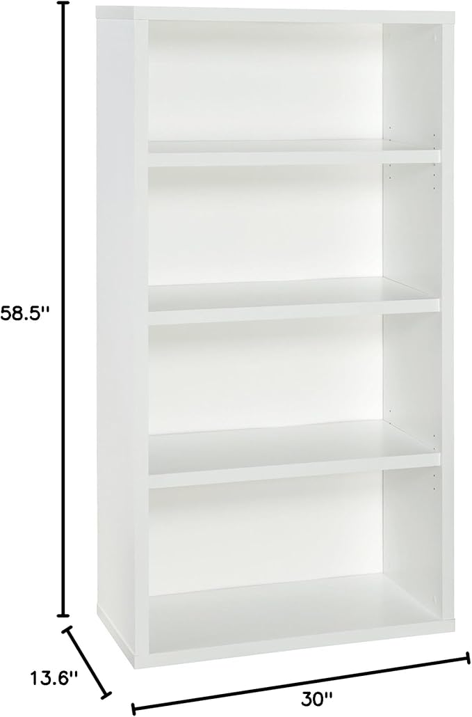 ClosetMaid Bookshelf with 4 Shelf Tiers, Adjustable Shelves, Tall Bookcase Sturdy Wood with Closed Back Panel, White Finish
