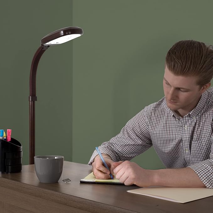 Bedford Home Floor Lamp - Full Spectrum Natural Sunlight Lamp with Bendable Neck - Reading, Craft, and Esthetician Light (Brown Woodgrain)