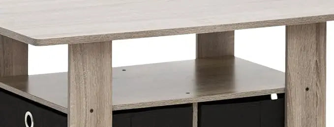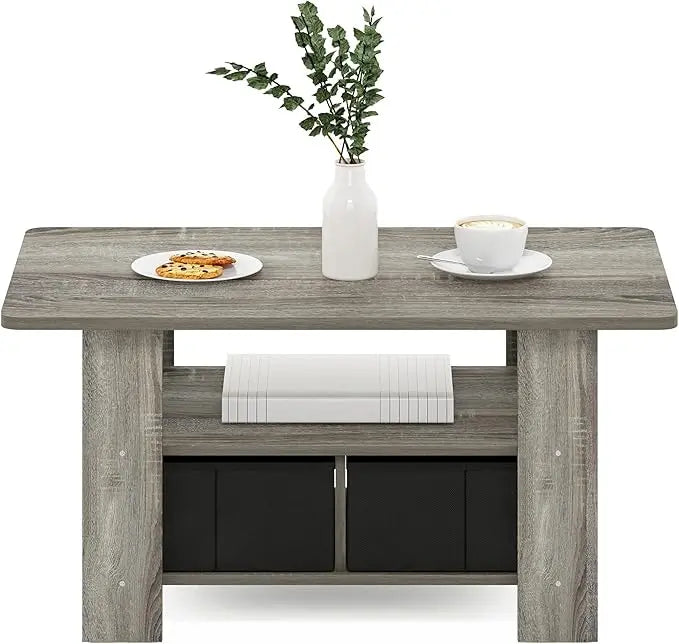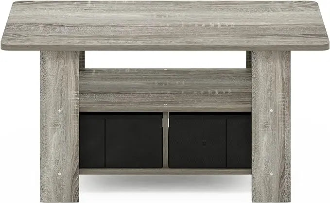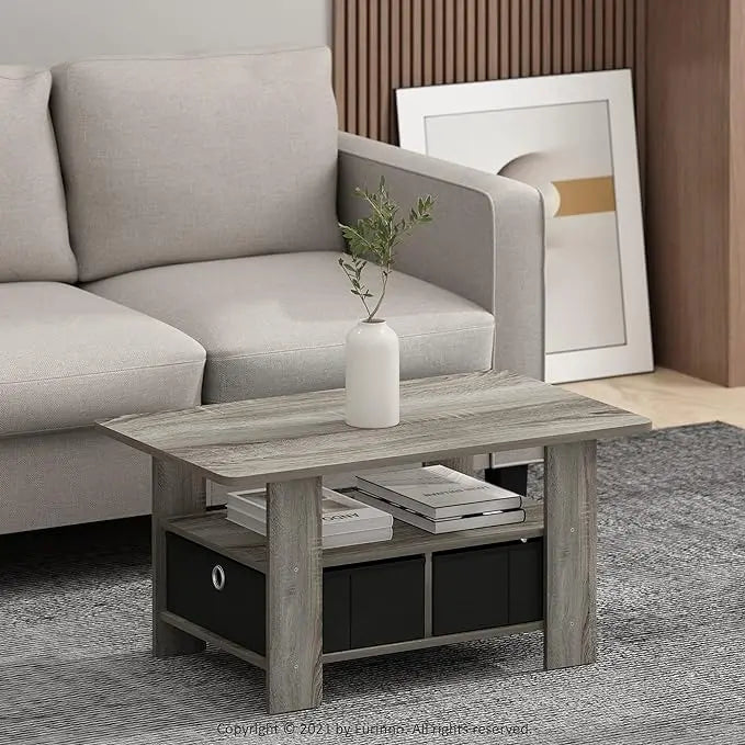 Furinno Andrey Coffee Table with Bin Drawer, French Oak Grey/Black