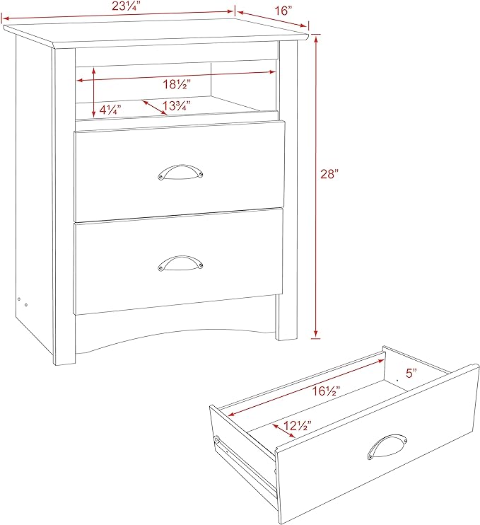 Prepac's Fremont 2 Drawer Nightstand: Elegant Bedroom Furniture, Bedside Table with Open Shelf, 23.25"W x 16"D x 28"H, Drifted Gray - DDC-2428