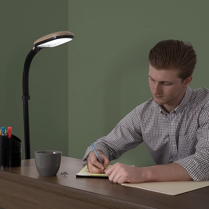 Floor Lamp - Full Spectrum Natural Sunlight Lamp with Bendable Neck - Reading, Craft, and Esthetician Light by Bedford Home (Light Woodgrain)