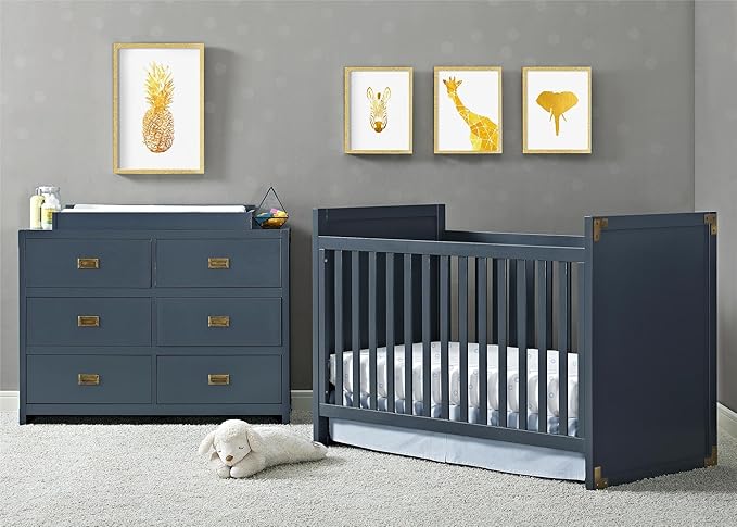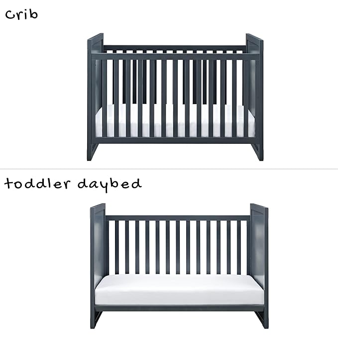 About This Campaign style 2-in-1 convertible crib Features a modern non-toxic graphite blue finish Designed with two full-size end panels...