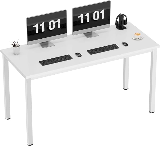 Need 55 Inch Large Computer Desk - Modern Simple Style Home Office Gaming Desk, Basic Writing Table for Study Student, White Metal Frame, White