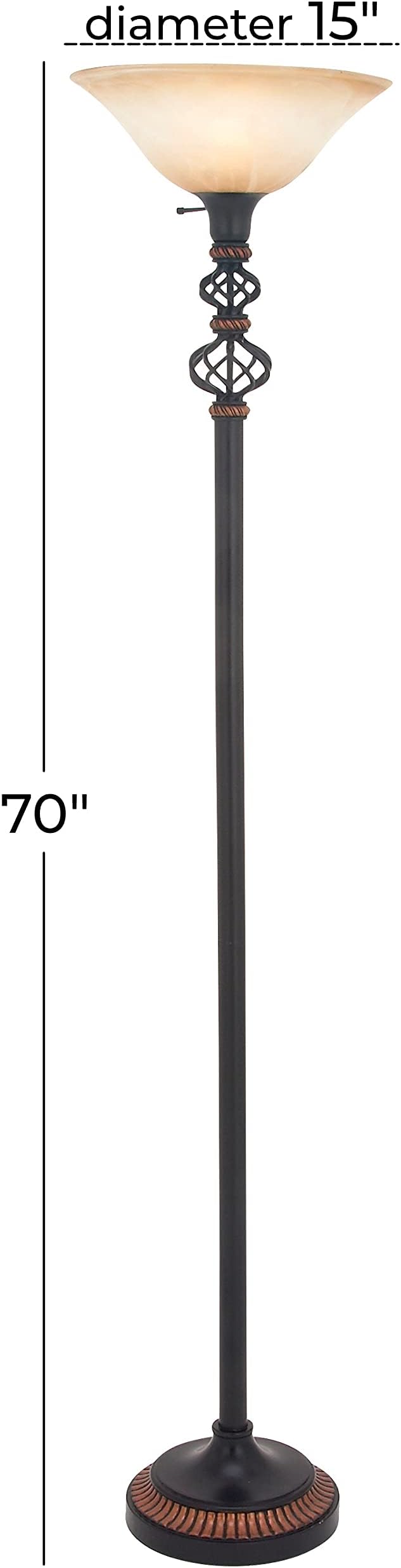 Deco 79 Metal Room Torchiere Antique Style Floor Lamp, Standing Lamp 15" x 15" x 70", Black