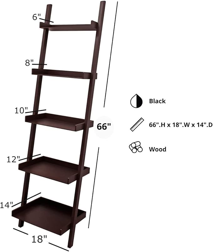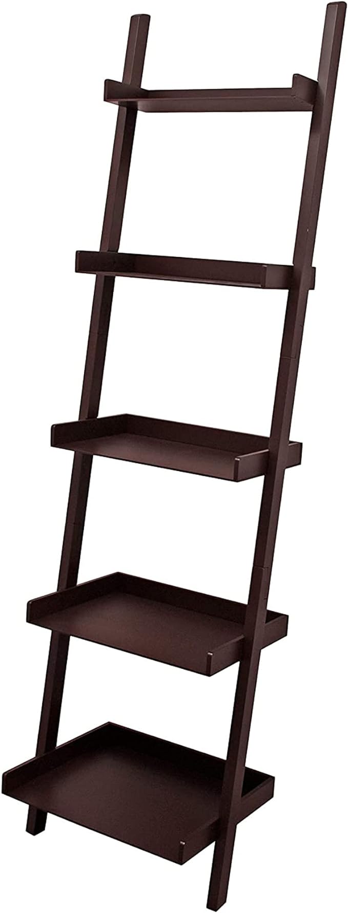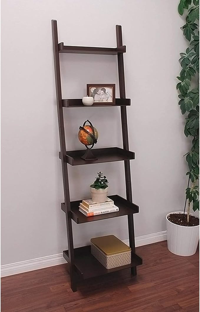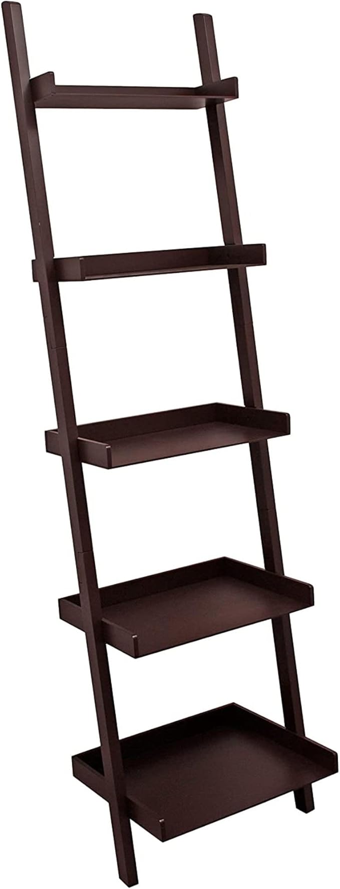 Kiera Grace Providence Hadfield 5 Tier Ladder Shelf, Leaning Bookshelf Storage Rack for Home, Office, 18" x 67", Espresso
