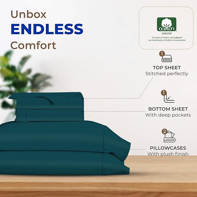 THREAD SPREAD 600 Thread Count Sheets Queen - 100% Egyptian Cotton Sheets Queen Size, 4 PC Luxury Sheets Queen Size, Ultra Soft Queen Sheets & Pillowcases Set, 16" Deep Pocket Cooling Sheet - Teal