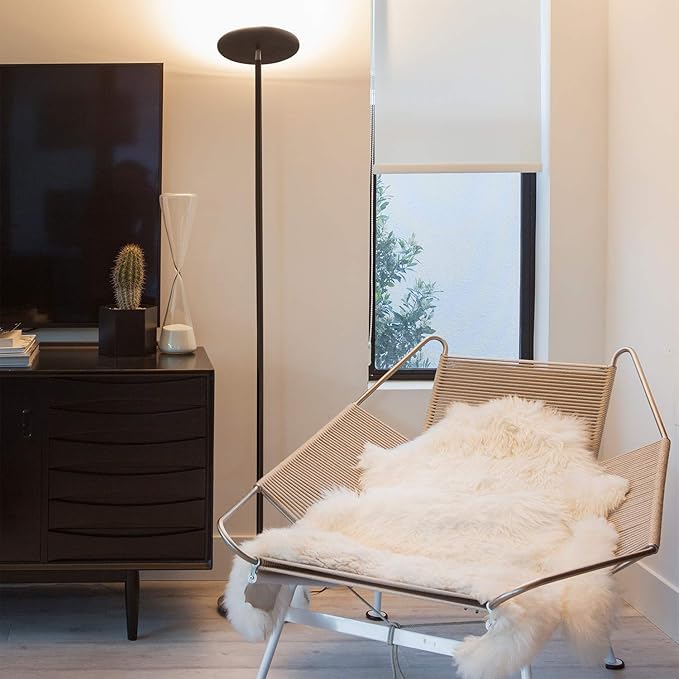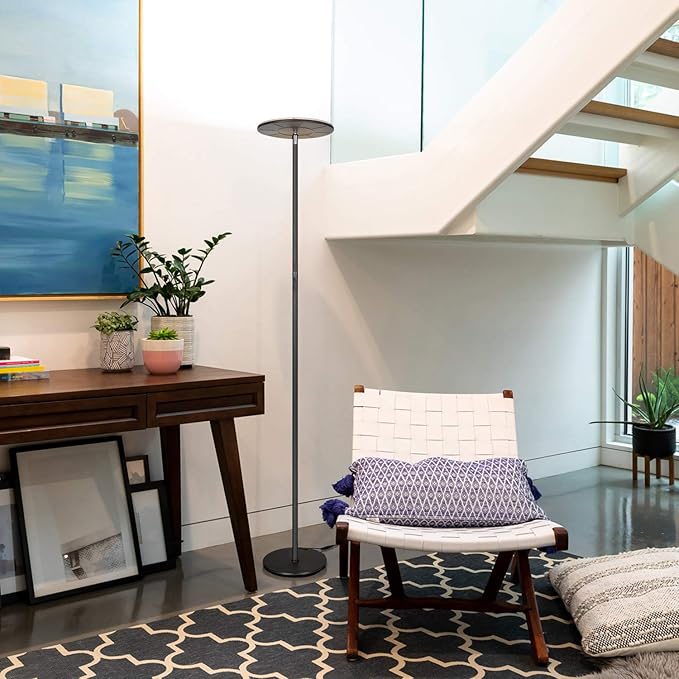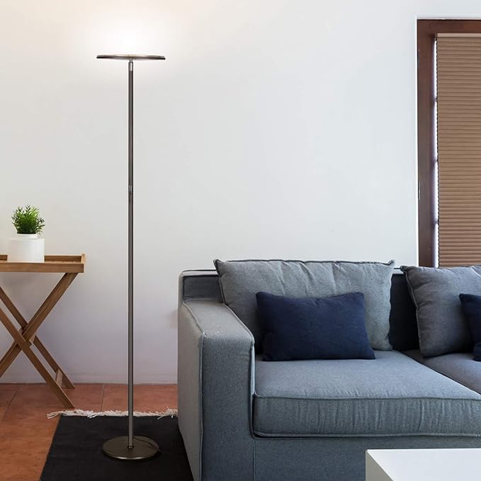 Brightech Sky LED Floor lamp, Torchiere Super Bright Floor Lamp for Living Rooms & Offices - Dimmable, Tall Standing Lamp for Bedroom Reading - Bronze