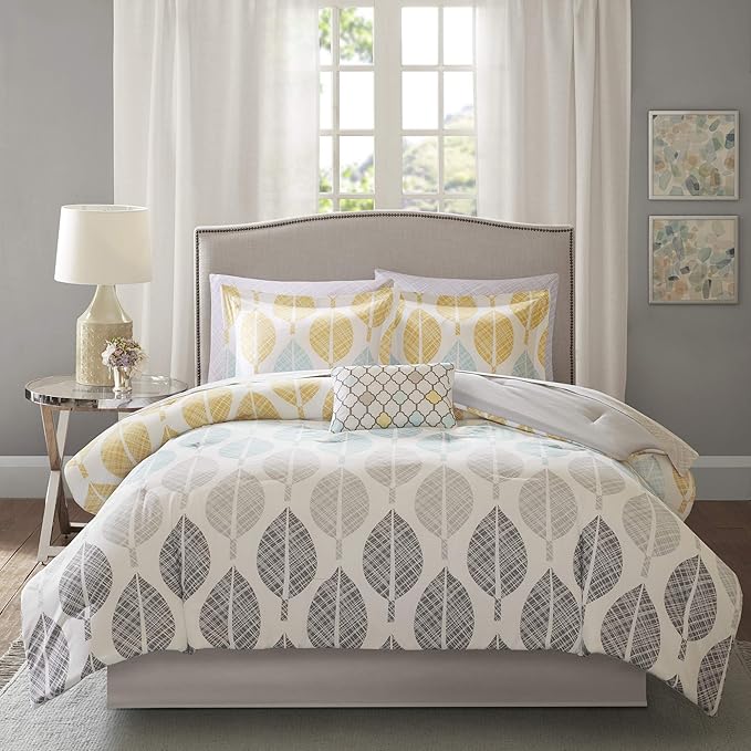 Madison Park Essentials Bed in a Bag Comforter, Vibrant Color Design All Season Down Alternative Cover with Complete Cotton Sheet Set, Cal King(104"x92"), Central Park, Leaf Yellow/Aqua
