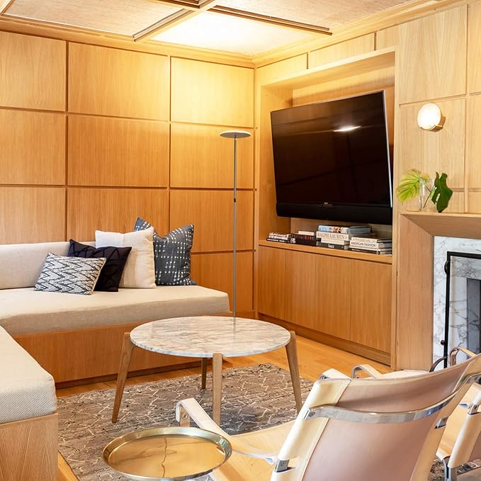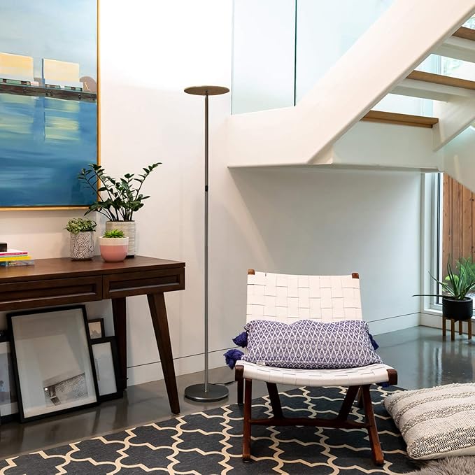 Brightech Sky LED Floor lamp, Torchiere Super Bright Floor Lamp for Living Rooms & Offices - Dimmable, Tall Standing Lamp for Bedroom Reading - Brushed Nickel