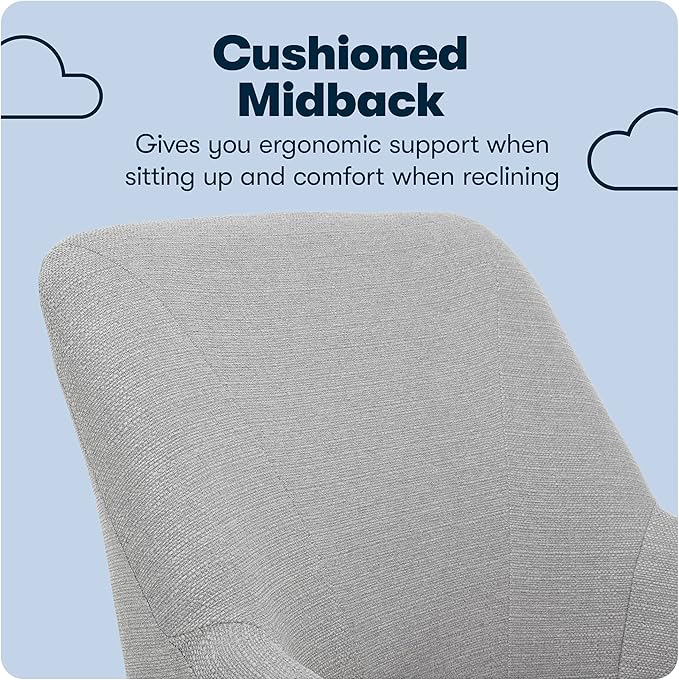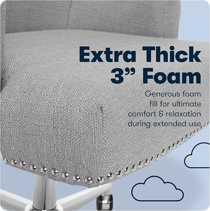 Serta Leighton Modern Office Chair, Stylish Mid-Back Desk Chair, Rivet Detail, Serta Quality Memory Foam, Armchair with Wheels, Vanity Chair, Swivel Chrome Metal Base, Twill Fabric, Light Gray