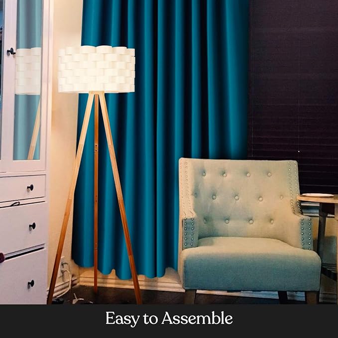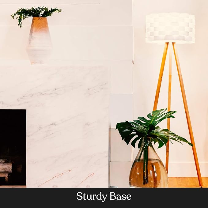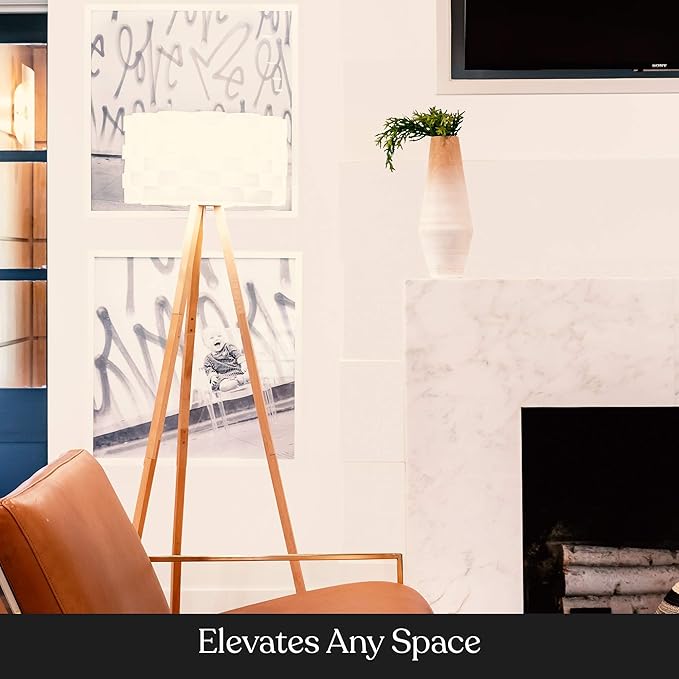 Brightech Bijou LED Floor Lamp, Standing Lamp for Bedroom Reading, Tripod Lamp for Living Rooms & Offices, Great Living Room Décor, Bohemian & Vintage Tall Lamp With Soft Light Bulbs - Natural Wood