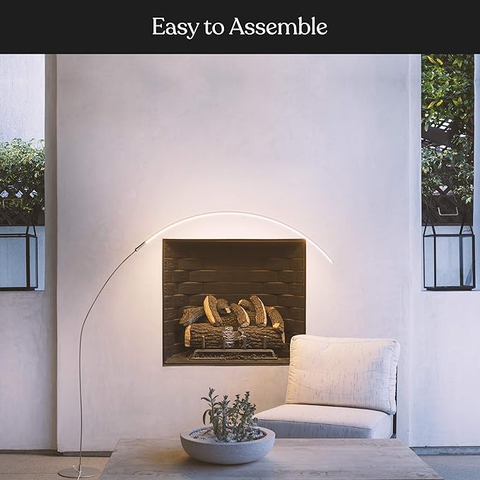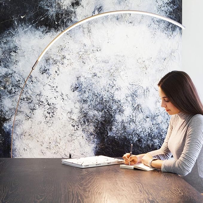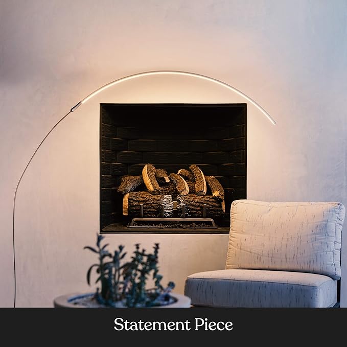 Brightech Sparq Arc Floor Lamp, Ultra Bright Lamp for Living Rooms & Offices – 3-Way Dimmable Smart, Tall Contemporary Standing Lamp for Reading in Bedrooms - Silver