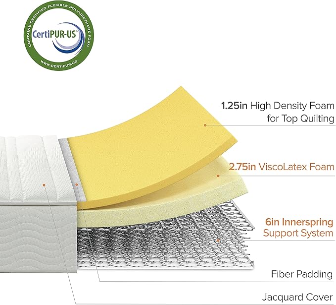 ZINUS 10 Inch Foam and Spring Mattress, Full, CertiPUR-US Certified Foams, Mattress in A Box, White