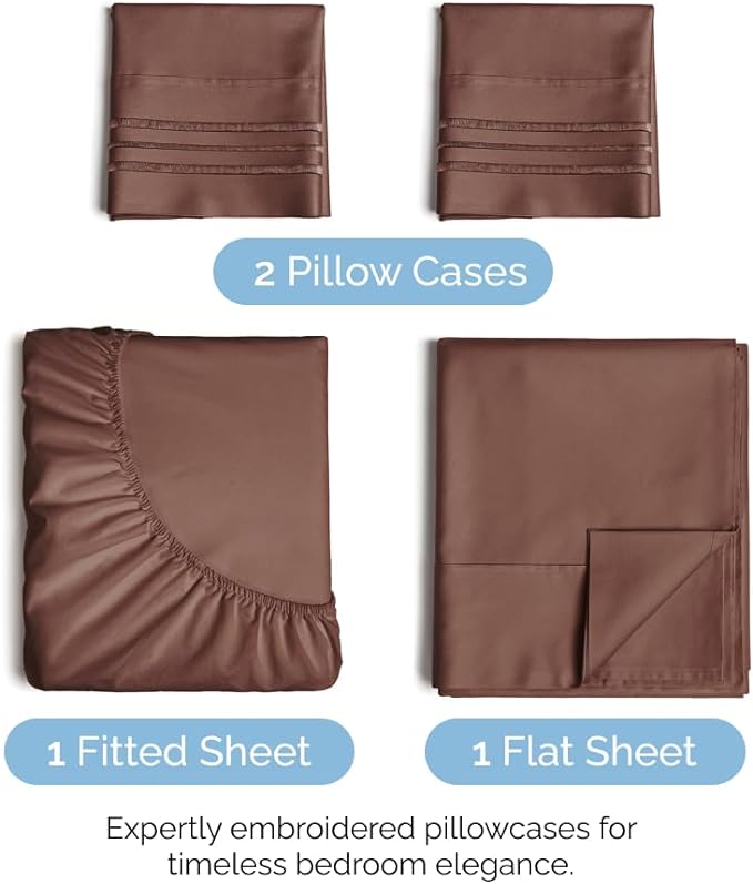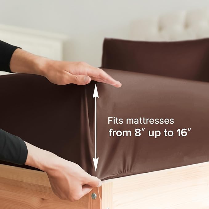 Cal King Size 4 Piece Sheet Set - Comfy Breathable & Cooling Sheets - Hotel Luxury Bed Sheets for Women & Men - Deep Pockets, Easy-Fit, Extra Soft & Wrinkle Free Sheets - Brown Oeko-Tex Bed Sheet Set