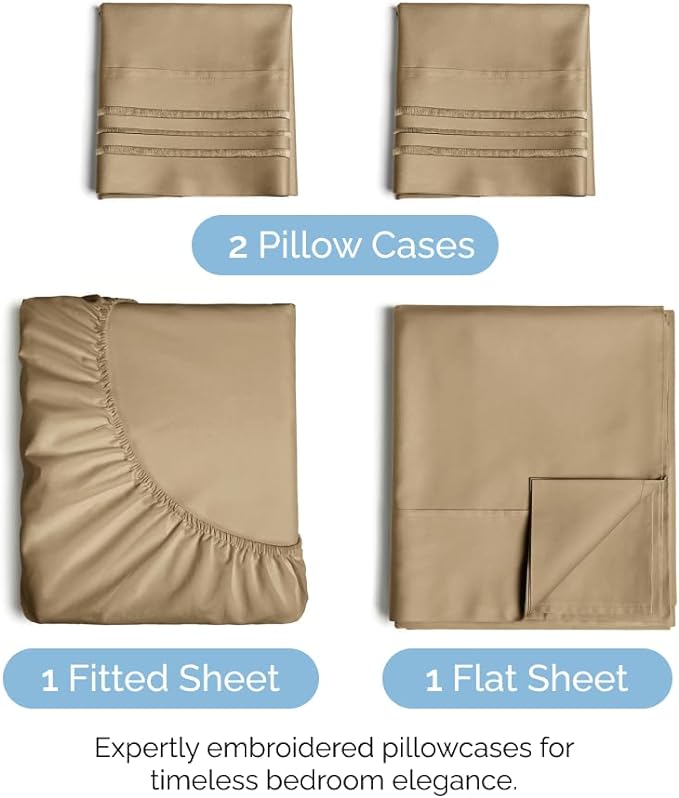 King Size 4 Piece Sheet Set - Comfy Breathable & Cooling Sheets - Hotel Luxury Bed Sheets for Women & Men - Deep Pockets, Easy-Fit, Extra Soft & Wrinkle Free Sheets - Beige Oeko-Tex Bed Sheet Set