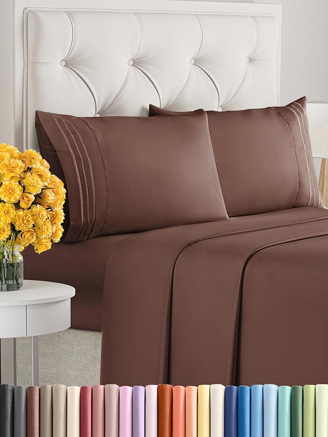 Queen Size 4 Piece Sheet Set - Comfy Breathable & Cooling Sheets - Hotel Luxury Bed Sheets for Women & Men - Deep Pockets, Easy-Fit, Extra Soft & Wrinkle Free Sheets - Brown Oeko-Tex Bed Sheet Set