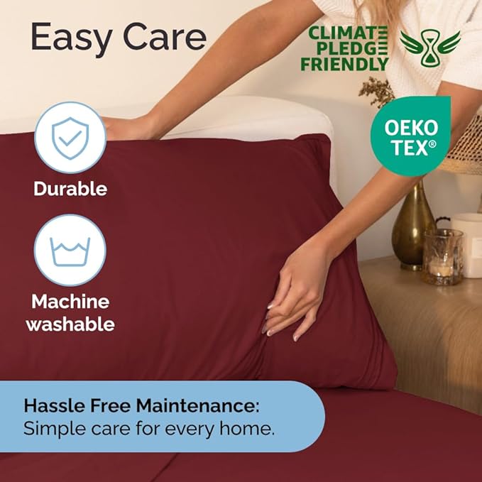 Queen Size 4 Piece Sheet Set - Comfy Breathable & Cooling Sheets - Hotel Luxury Bed Sheets for Women & Men - Deep Pockets, Easy-Fit, Extra Soft & Wrinkle Free Sheets - Burgundy Oeko-Tex Bed Sheet Set