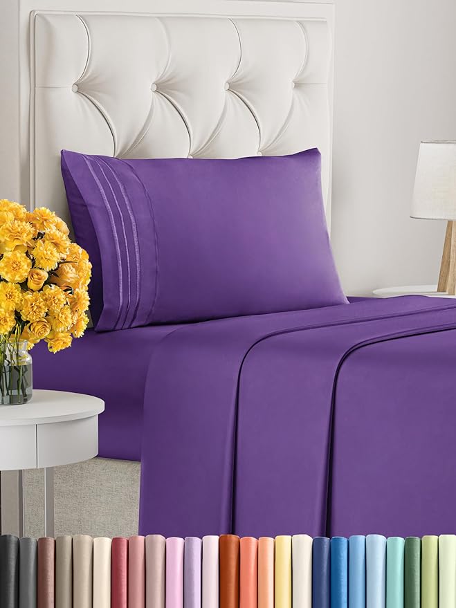 Twin Size 3 Piece Sheet Set - Comfy Breathable & Cooling Sheets - Hotel Luxury Bed Sheets for Women & Men - Deep Pockets, Easy-Fit, Extra Soft & Wrinkle Free Sheets - Purple Oeko-Tex Bed Sheet Set