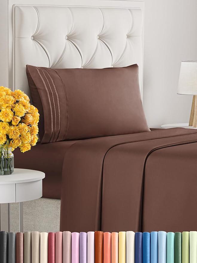 Twin Size 3 Piece Sheet Set - Comfy Breathable & Cooling Sheets - Hotel Luxury Bed Sheets for Women & Men - Deep Pockets, Easy-Fit, Extra Soft & Wrinkle Free Sheets - Brown Oeko-Tex Bed Sheet Set