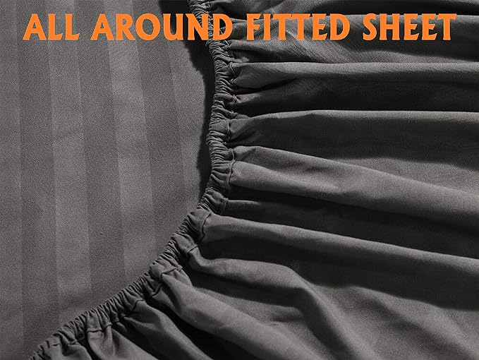 Elegant Comfort Best, Softest, Coziest 6-Piece Sheet Sets! - 1500 Premier Hotel Quality Luxurious Wrinkle Resistant 6-Piece DAMASK STRIPE Bed Sheet Set, California King Grey
