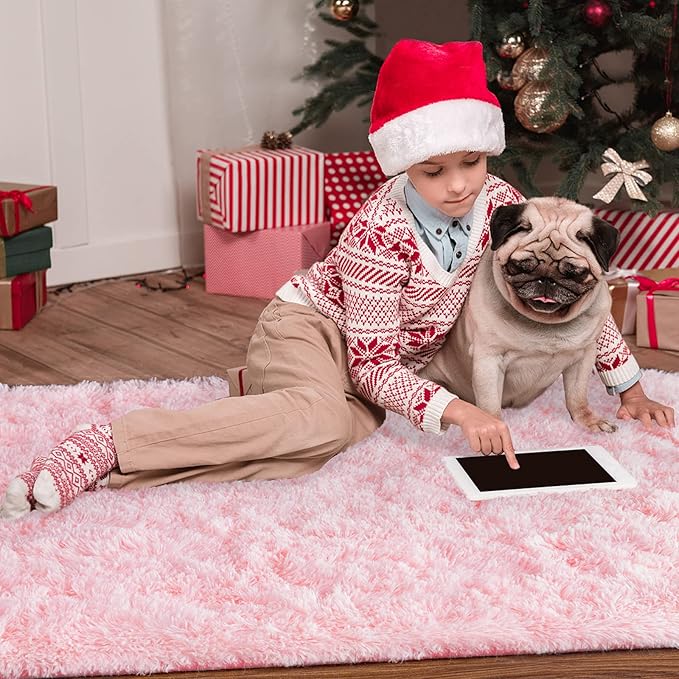 Noahas Ultra Soft Fluffy Rugs,Pink Area Rugs for Bedroom Shaggy Oval 2.6' x 5.3' Kids Bedroom Fuzzy Bedside Small Carpet Aesthetic,Nursery Rug for Baby,Room Decor for Teen Girls