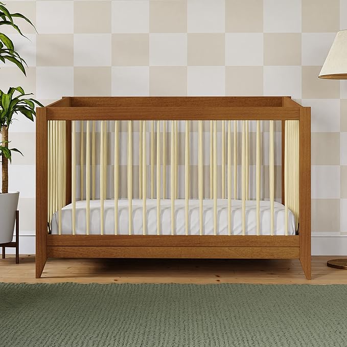 Babyletto Sprout 4-in-1 Convertible Crib with Toddler Bed Conversion Kit in Chestnut and Natural, Greenguard Gold Certified