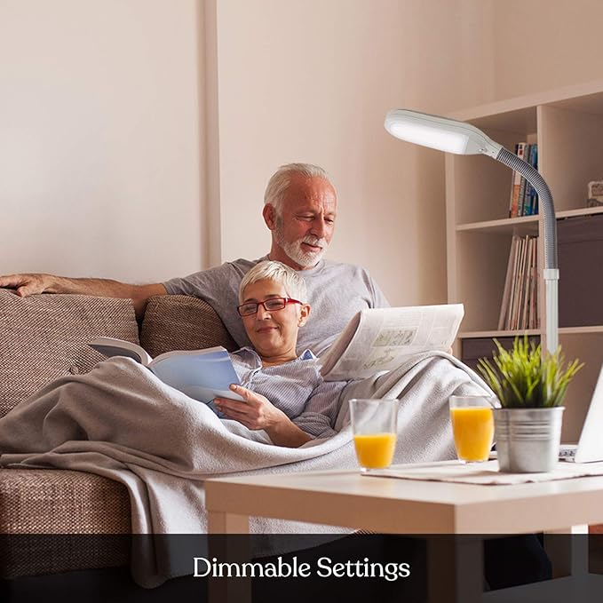 Brightech Litespan - Bright LED Floor Reading Lamp for Over Chair Crafts and Reading, Estheticians' Light for Lash Extensions, Adjustable Standing Lamp for Living Room, Bedroom, Office - White