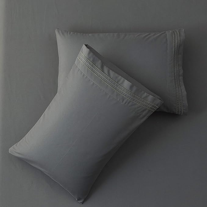 SONORO KATE Bed Sheet Set Super Soft Microfiber 1800 Thread Count Luxury Egyptian Sheets 18-Inch Deep Pocket Wrinkle-3 Piece(Twin XL Dark Grey)