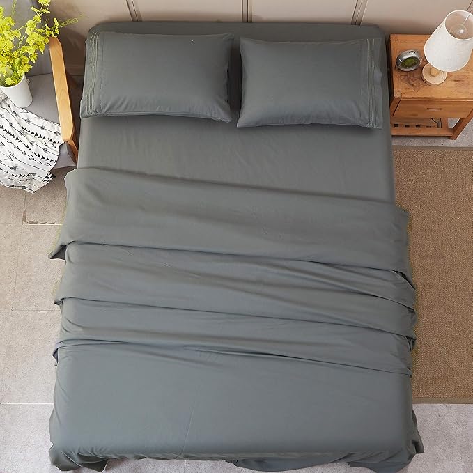SONORO KATE Bed Sheet Set Super Soft Microfiber 1800 Thread Count Luxury Egyptian Sheets 18-Inch Deep Pocket Wrinkle -4 Piece(California King Dark Grey)