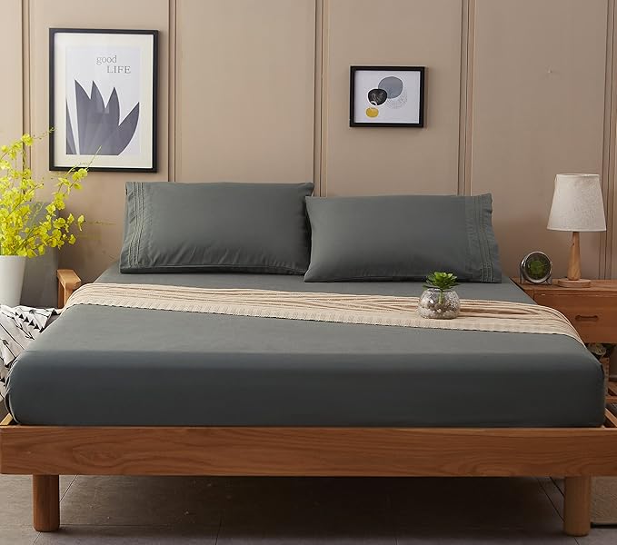 SONORO KATE Bed Sheet Set Super Soft Microfiber 1800 Thread Count Luxury Egyptian Sheets 18-Inch Deep Pocket Wrinkle -3 Piece(Twin Dark Grey)