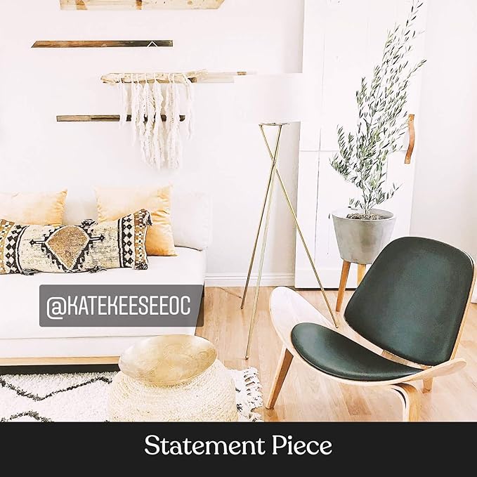 Brightech Jaxon LED Floor lamp, Modern Lamp for Living Rooms & Offices, Tall Lamp with Contemporary Drum Shade, Gold Tripod Standing Lamp for Bedroom Reading, Great Living Room Decor - Brass