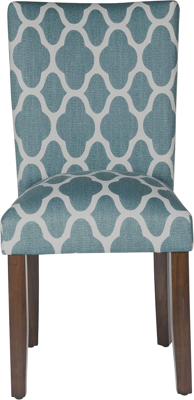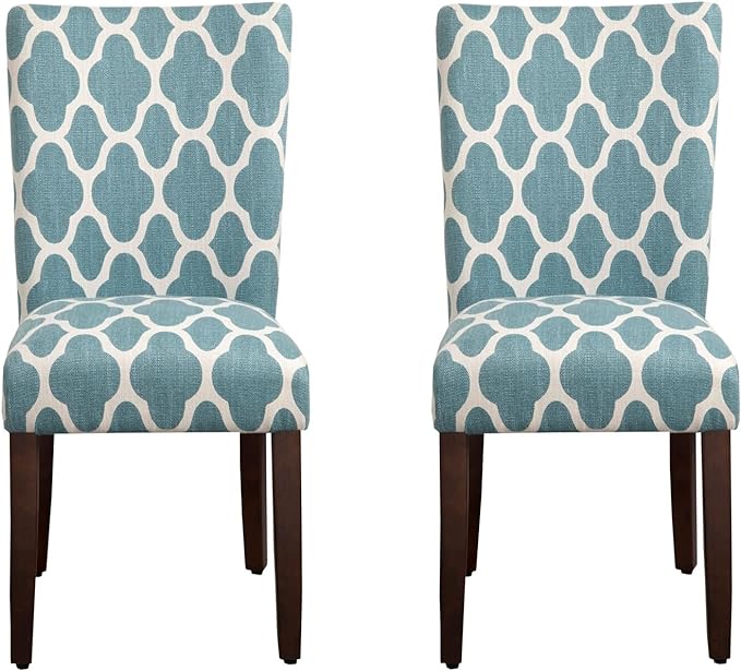 HomePop Parsons Classic Upholstered Accent Dining Chair, Set of 2, Teal and Cream Geometric