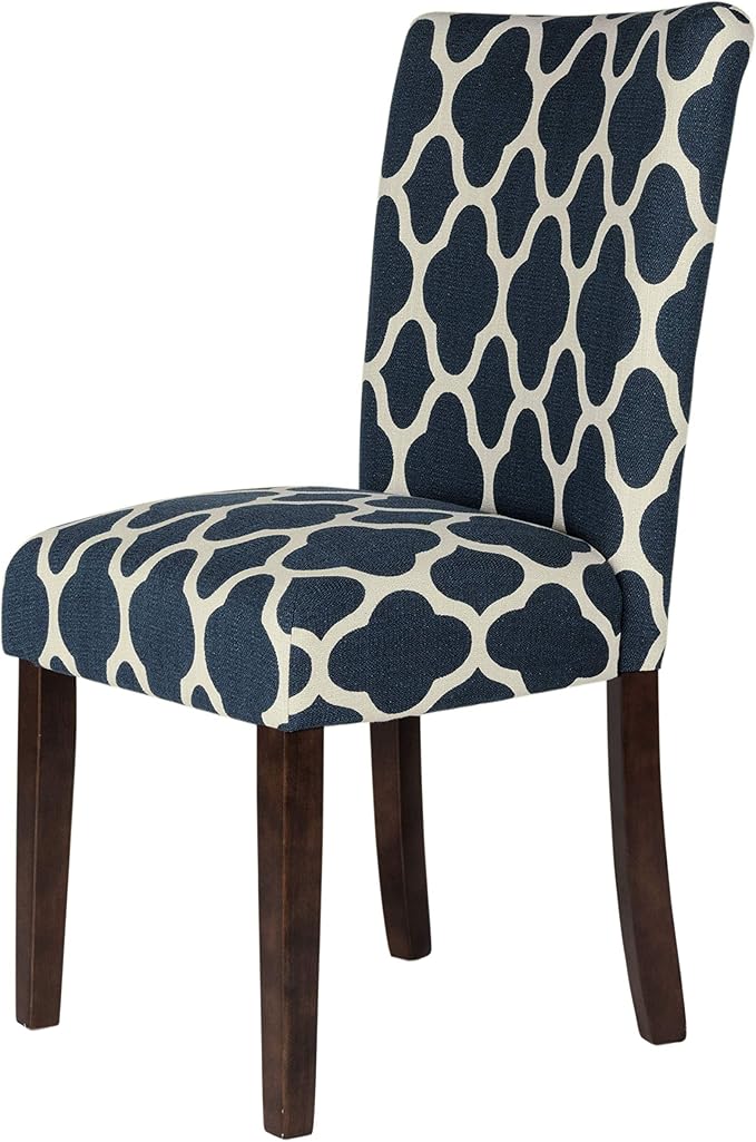 HomePop Parsons Classic Upholstered Accent Dining Chair, Set of 2, Navy and Cream Geometric