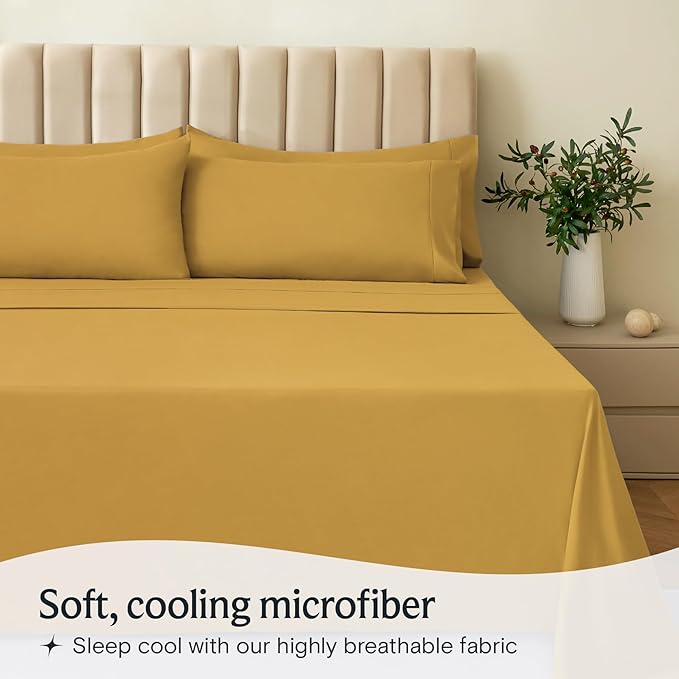 LuxClub 6 PC Queen Sheet Set, Breathable Luxury Bed Sheets, Deep Pockets 18" Eco Friendly Wrinkle Free Cooling Sheets Machine Washable Hotel Bedding Silky Soft - Medallion Gold Queen
