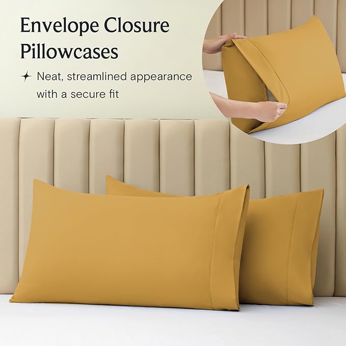 LuxClub 6 PC California King Sheet Set, Breathable Luxury Bed Sheets, Deep Pockets 18" Wrinkle Free Cooling Sheets Machine Washable Hotel Bedding Silky Soft - Medallion Gold Cal King